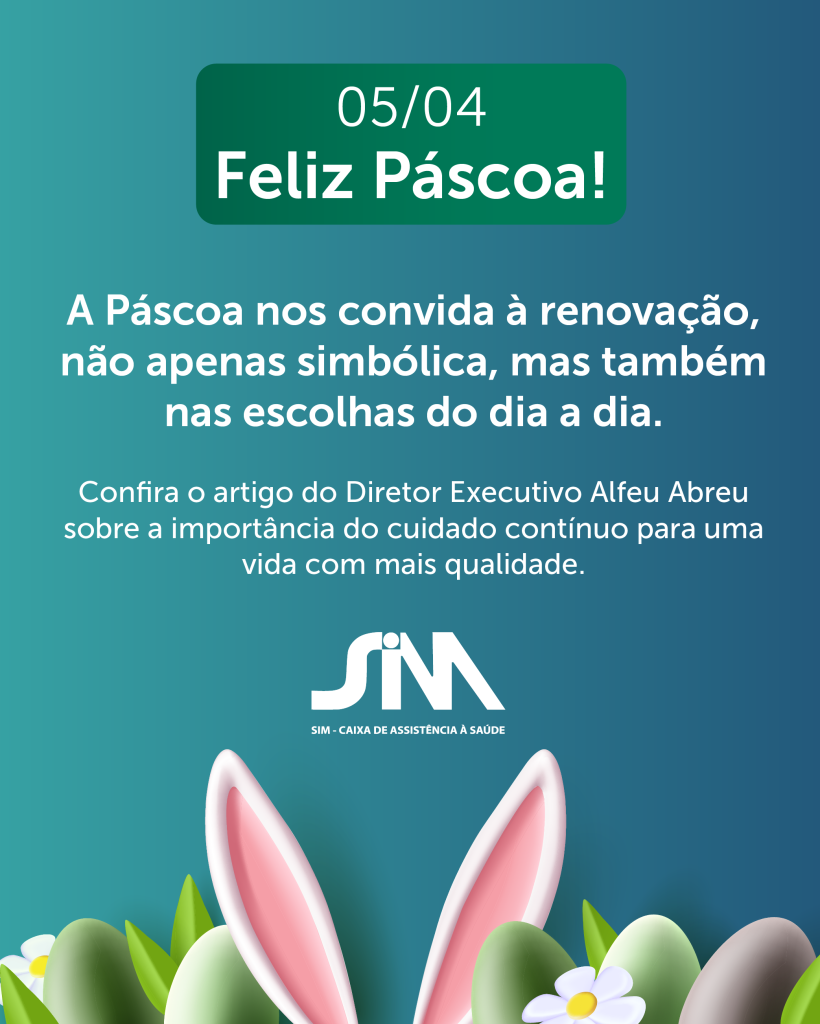 Neste período de Páscoa, o Diretor Executivo da SIM, Alfeu Luiz Abreu, propõe uma reflexão sobre o significado da “passagem” e sua relação com o cuidado em saúde. A partir de uma leitura simbólica da data, o artigo conecta fé, renovação e responsabilidade cotidiana, reforçando o papel do cuidado contínuo como caminho para uma vida mais longa e saudável, confira a seguir: