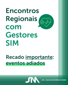 A SIM – Caixa de Assistência à Saúde comunica o adiamento de todos os Encontros Regionais com Gestores que estavam previstos para ocorrer entre setembro e novembro. A decisão foi tomada após ouvir sugestões de beneficiários que demonstraram interesse em participar, mas solicitaram um prazo maior para se programarem.
